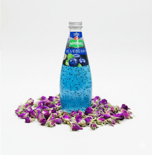 نوشیدنی بلوبری با بذر ریحان درین گل و آدونیس ۳۰۰ سیسی | طبیعی و باکیفیت
