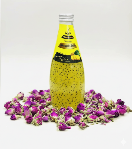 نوشیدنی آناناس شرکت درین گل کاشان حجم 300میلی لیتر باطعم و باکیفیت عالی حاوی بذر ریحان